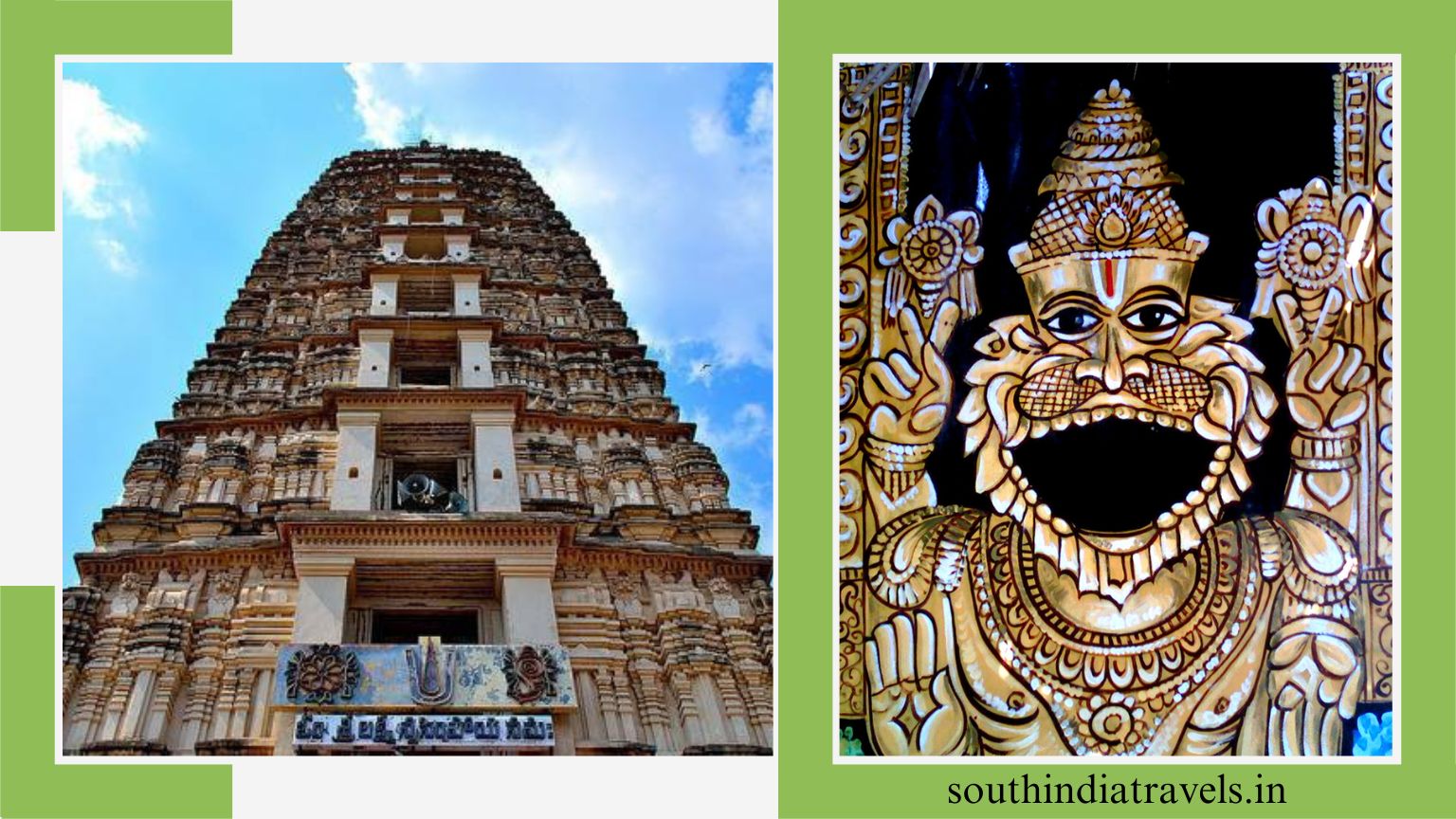 Temples like Panakala Swami and Lakshmi Naramisha are located at the foot of the Auspicious Hill. The town has three Narasimha Swami temples, located at a distance of 38 km from Amaravati, which have attracted lots of tourists time and again.